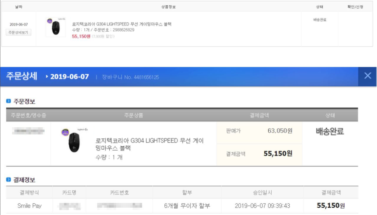 구매영수증을 캡처해서 보관해두면 나중에 A/S 받을 때 편해요.